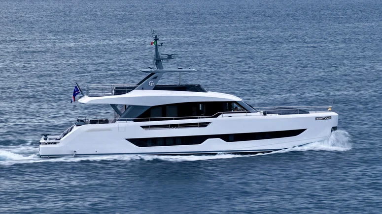 It is the first Technohull with a steering wheel positioned in the centre of the console, which enhances both control and visibility, while the opening console deflectors reduce drag and improve comfort both for the driver and the guests.